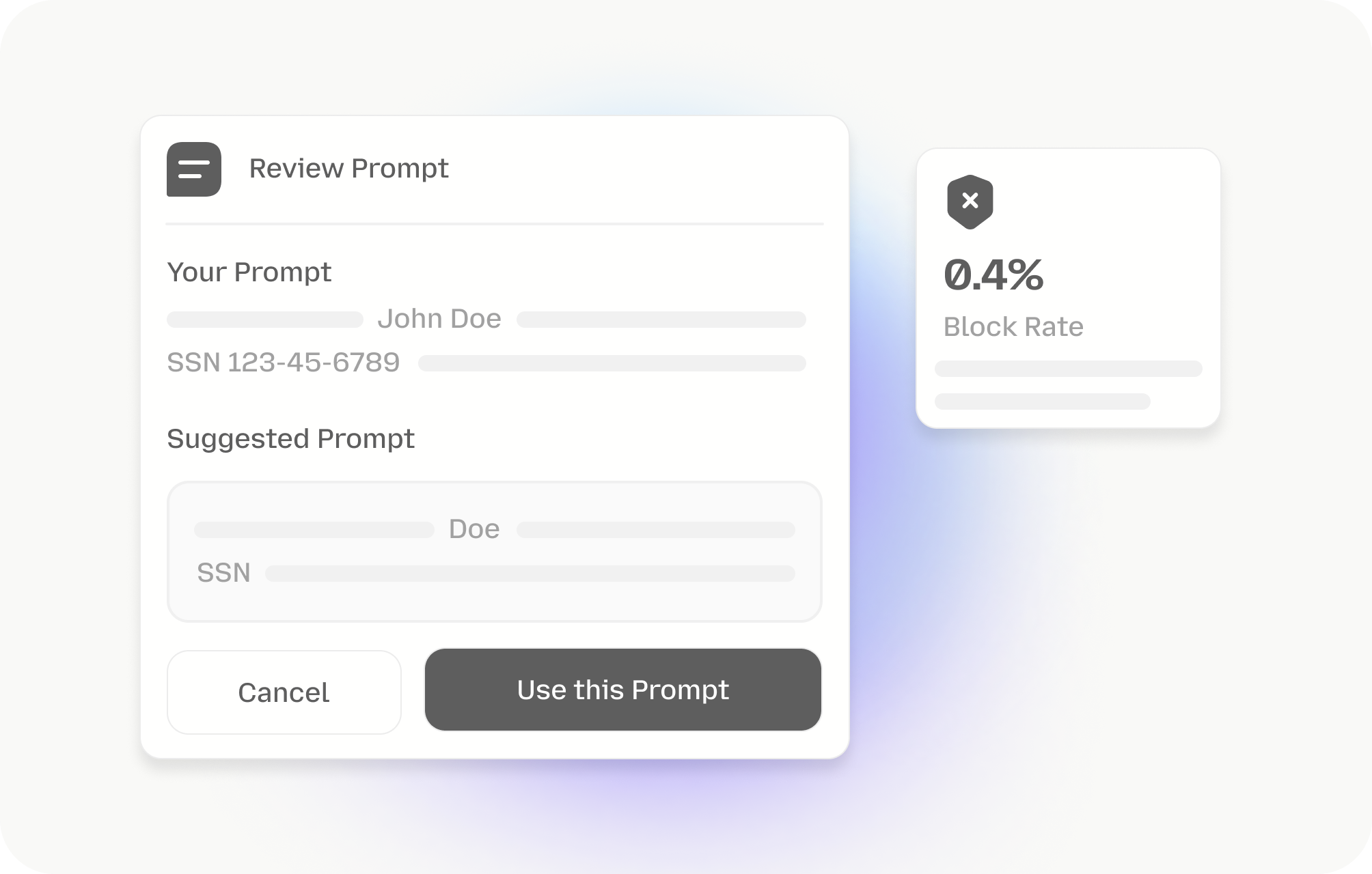 - Identifies privileged content shared through prompts